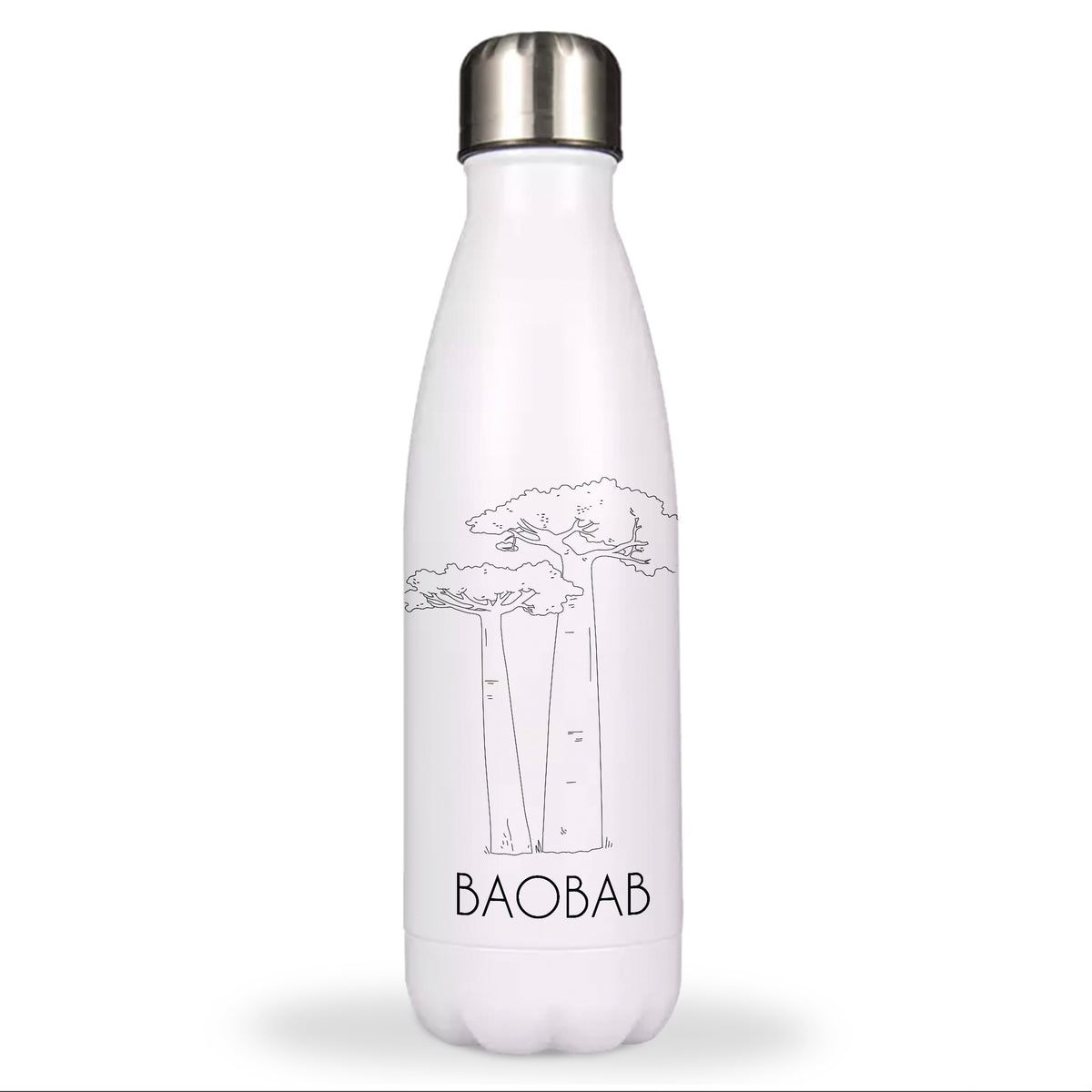 Notre Baobab Bottle arbore un design monochrome inspiré de l’arbre millénaire. Un symbole de force et de résilience… parfait pour vous rappeler qu’avec un baobab en main, vous ne manquerez jamais de bouteille.